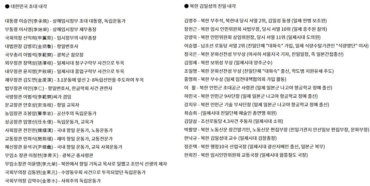그런데 이거는 어떻게 된 일인가? 오히려 북한 김일성이 친일 내각이지 않나? 이거에 대해서 이승만전권인 친일파 정권이라고 하는데 글쎄.......