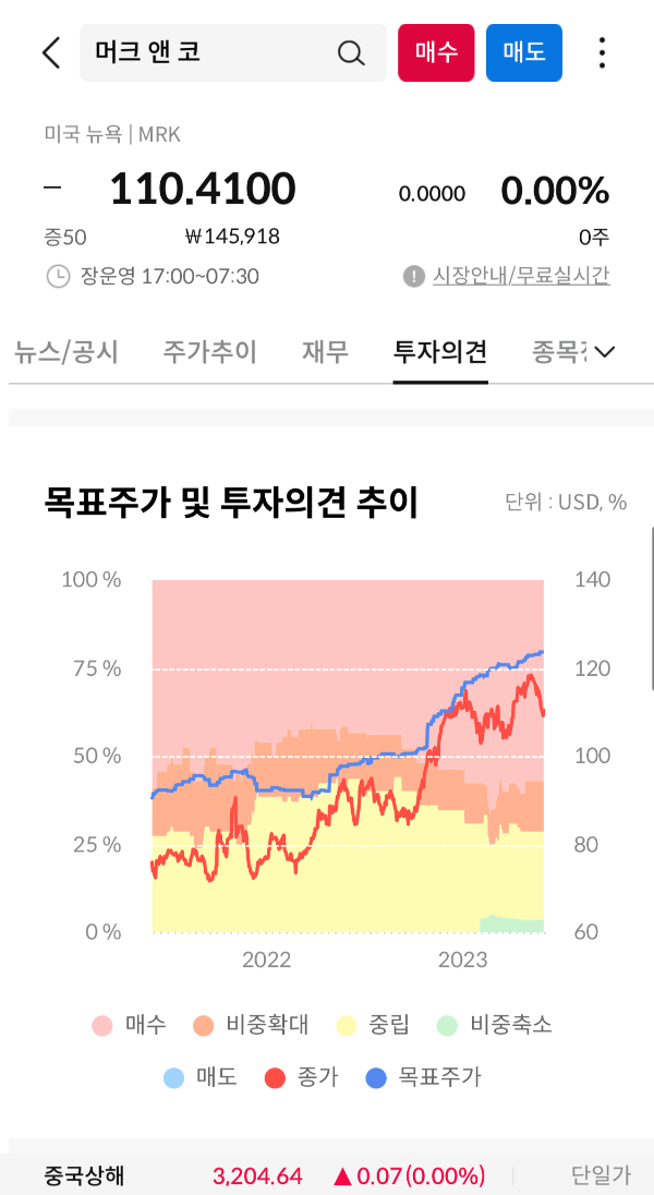 머크의 성장 전망은 첨단 알고리즘을 활용한 신약 개발 및 면역항암제와 백신 분야에서 기대된다. 목표 주가는 전문가의 의견과 시장 상황에 따라 달라질 수 있다. 개별 투자자는 자신의 투자 전략에 맞게 목표 주가를 설정해야 한다. 목표주가는 121.74달러이고 상승여력은 7.33% 더 남아있다. 그리고 많이 증권사가 비중확대 또는 매수에 표를 던지고 포트폴리오에 담아 가고 있는 거처럼 보인다. 이런 기관이 움직일 때 개미들이 올라타야 되지 않을까 싶다.