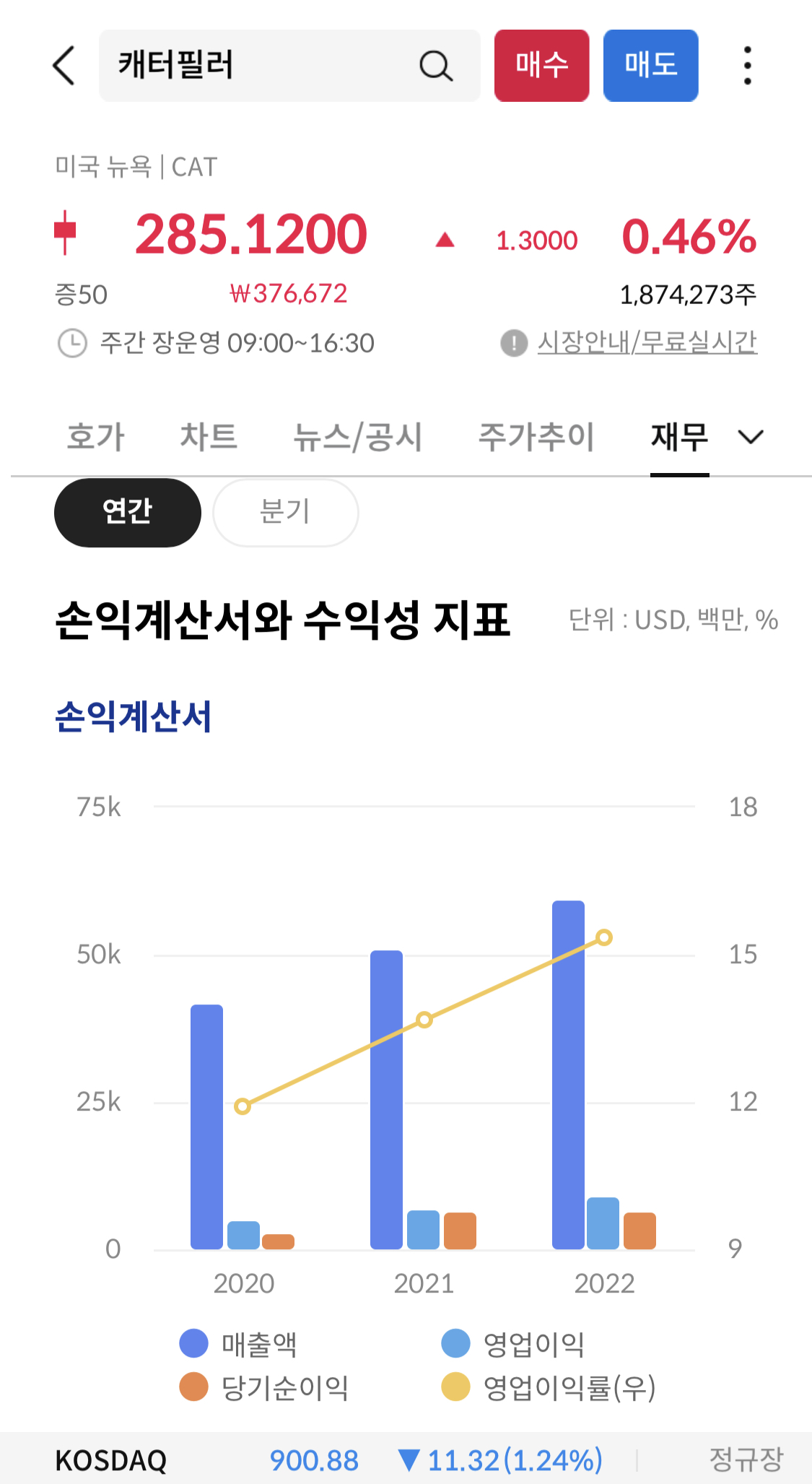 캐터필러, 건설 수요 증가로 매출 22%↑…주가는 2%↑ - 연합인포맥스