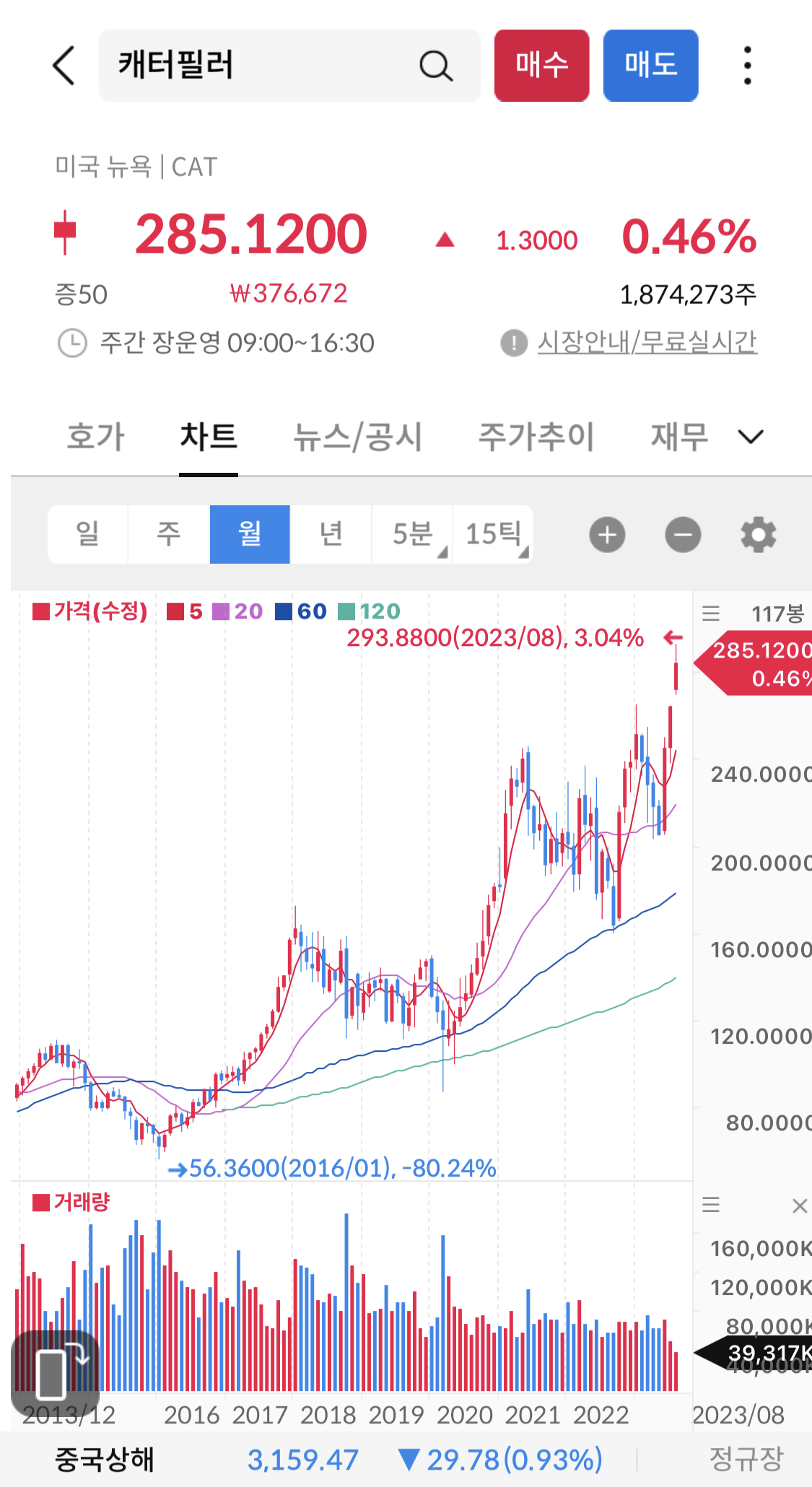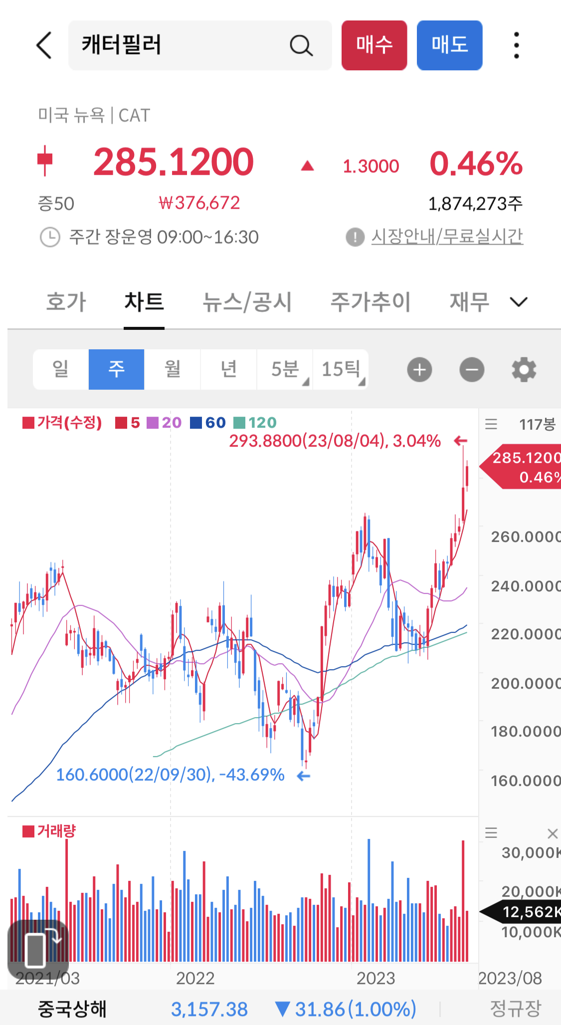 오랜만에 배당주로 찾아왔다. 캐터필러라는 회사는 지인의 추천으로 한번 찾아보게 되었다. 건설 쪽 중장비와 관련된 업체인데 언뜬 차트를 보니까 계속 우상향 성장하고 있는 회사라서 괜찮은거 같아 이번에 정대리가 한번 정리 해봤다. 그래도 나름 열심히 정대리가 찾은것을 공유해드리고자 하니 다들 할거 없을 때 천천히 읽어 보길 바란다. 그럼 시작하자!!!!!