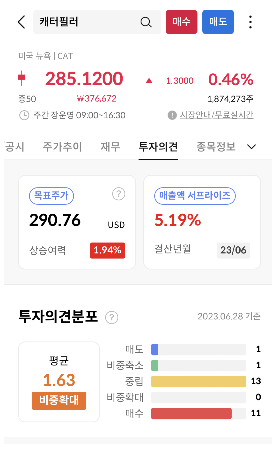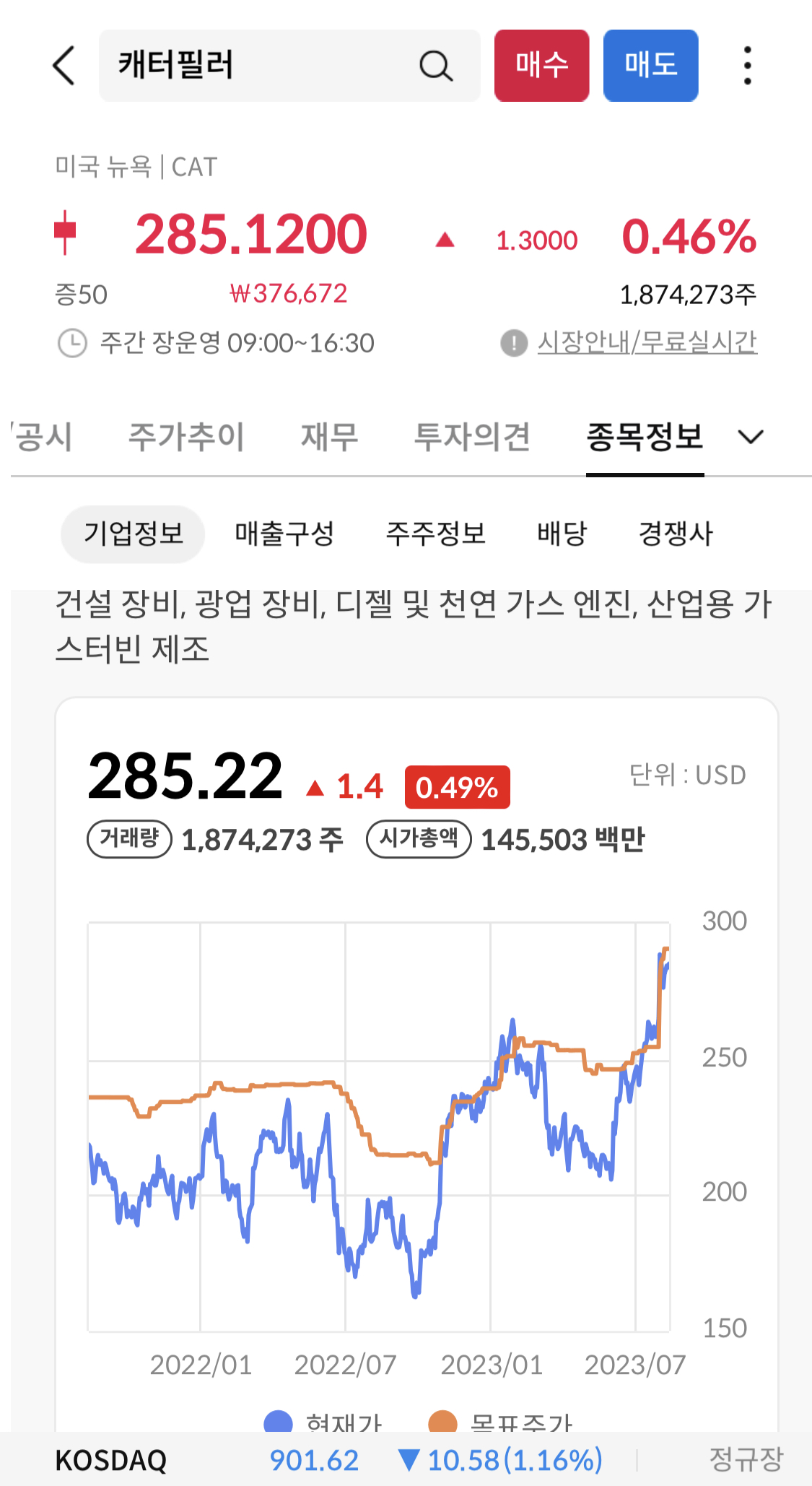그에 따라 전문투자자들도 중럄 또는 매수에 포지션을 잡을 것으로를 생각된다. 현재시가 총액은 145,503 백만 달러이다.