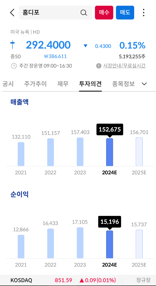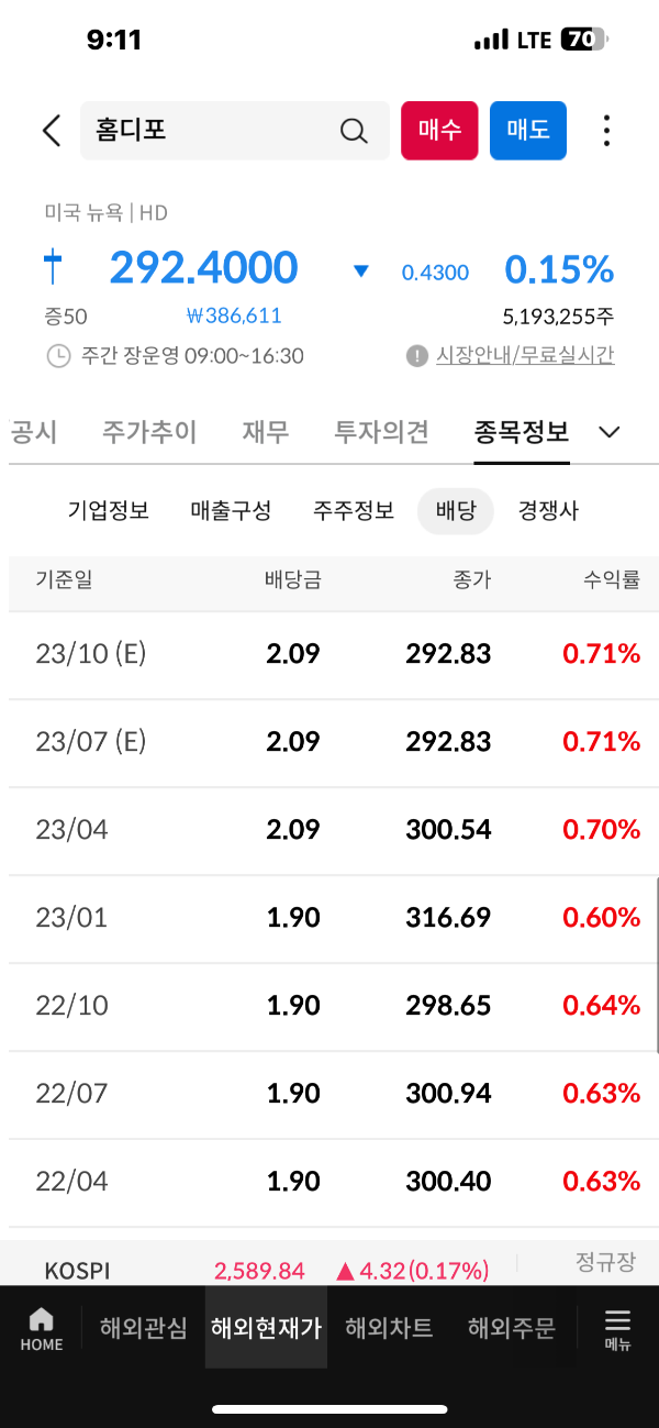 지금 홈디포의 목표주가는 23.05.31(수) 기준으로는 313.6달러이므로 상승 할 여력 14.13%이다. 아직 상승할 여력이 많다는거다. 나는 차트를 볼 때는 관망이였지만 한주씩 구매할꺼 같다. 물론 이것을 작성할때 쓴 삼성증권을 이용하거나, 토스뱅크의 소수점 매매로 구입을 할 예정이다. 한주당 너무 비싸다. 지금 안그래도 돈없는데 슬프다.