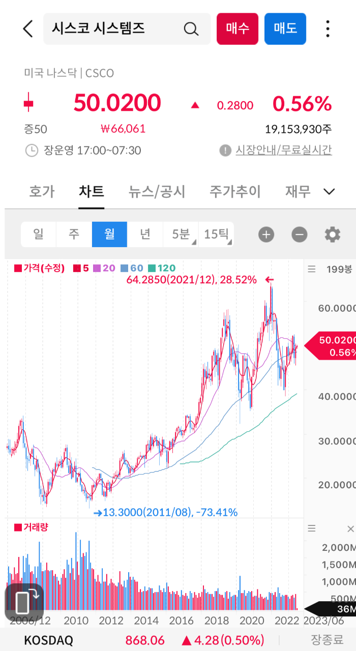 [미국주식][배당투자] 네트워크 보안회사 시스코 시스템즈(CSCO)