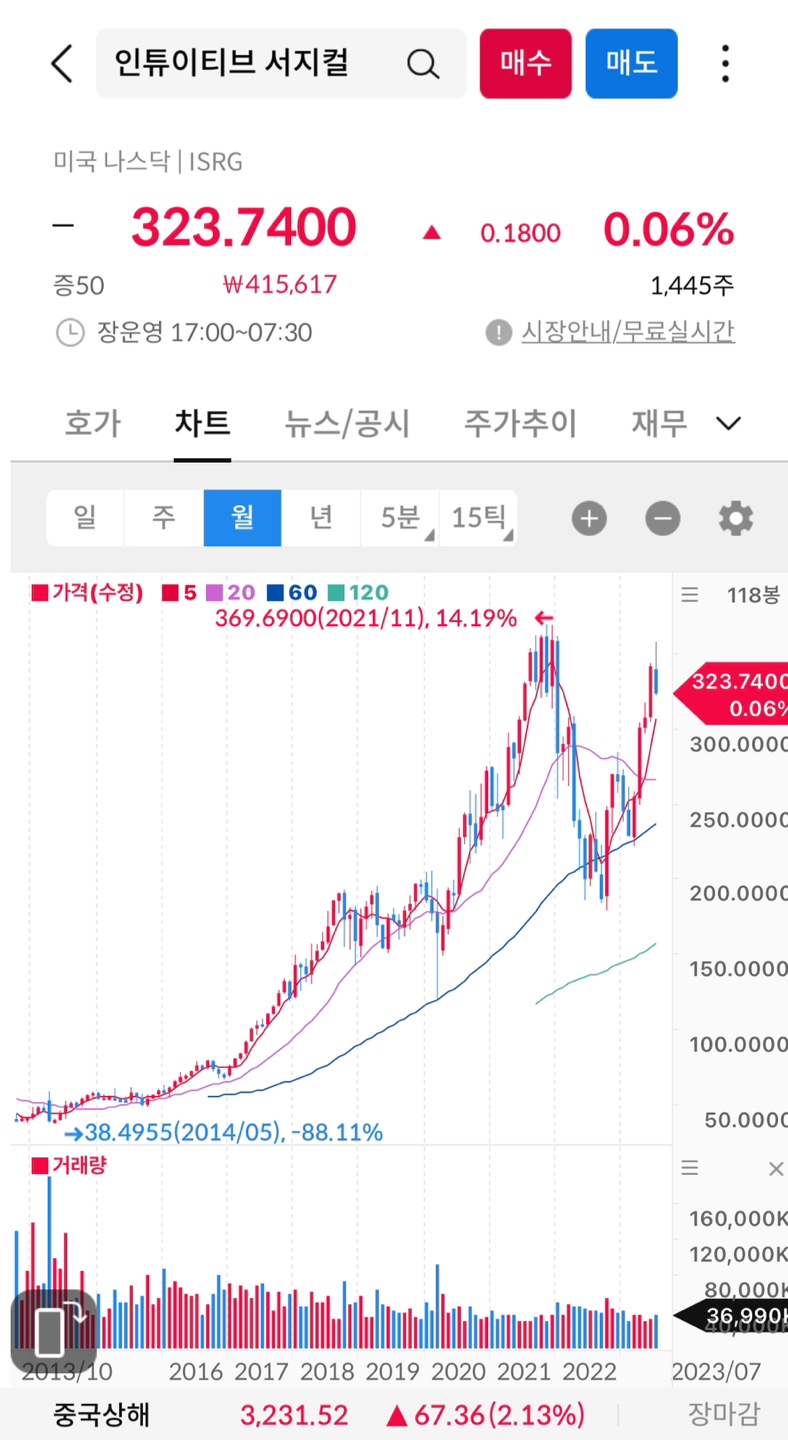 이번에는 정대리가 인투이티브 서지컬이라는 수술 로봇을 생산하는 회사중 애플이라고 불리는 기업정보 및 주가 및 전망에 대해 같이 알아 보는 시간을 가지려고 한다. 그럼 시작하자!!