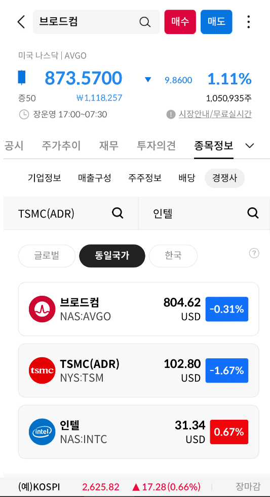 브로드컴은 현재 시장에서 매우 강한 위치를 보유하고 있으며, 같은 분야의 경쟁사들보다 뛰어난 기술력과 독창성을 바탕으로 높은 시장점유율을 확인하고 있다. 이러한 이유로 브로드컴은 모든 세그먼트에서 주요 고객들의 선호도가 높은 기업 중 하나이다. 전문투자기관에서도 프로드컴에 대해서 투자의견은 구매에 손을 만이들고 있고, 상승여력도 9%이다. 이렇게 주당 가격이 높으면데 상승여력이 이만큼 높다는 것은 회사의 전망이 좋다고 볼 수 있을거 같다.