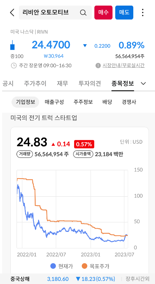 리비안은 2009년 설립된 미국의 전기차 제조업체로서 전기 픽업트럭 R1T와 전기 SUV R1S를 개발하고 있으며, Amazon과 Ford와 같은 주요 투자기관들로부터 자금을 유치한 바 있다. 친환경적인 이동수단 개발을 적극적으로 추진하며, 전기차 시장에서 주목받고 있다.