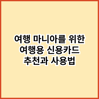 여행 마니아를 위한 여행용 신용카드 추천과 사용법 🌍💳