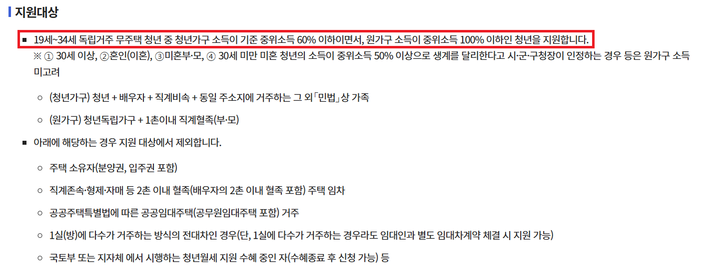 - 연령: 19세~34세의 독립 거주 무주택 청년