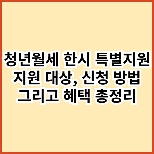 청년월세 한시 특별지원은 고물가와 고금리로 어려움을 겪는 청년들에게 실질적인 도움을 제공합니다. 조건을 충족하는 분들은 놓치지 말고 신청하시기 바랍니다.