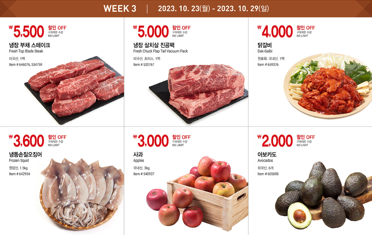 상품내역 : 고기, 과일, 해산물 등을 아마 여러분들이 제일 찾는 상품이지 않을까 싶다.
