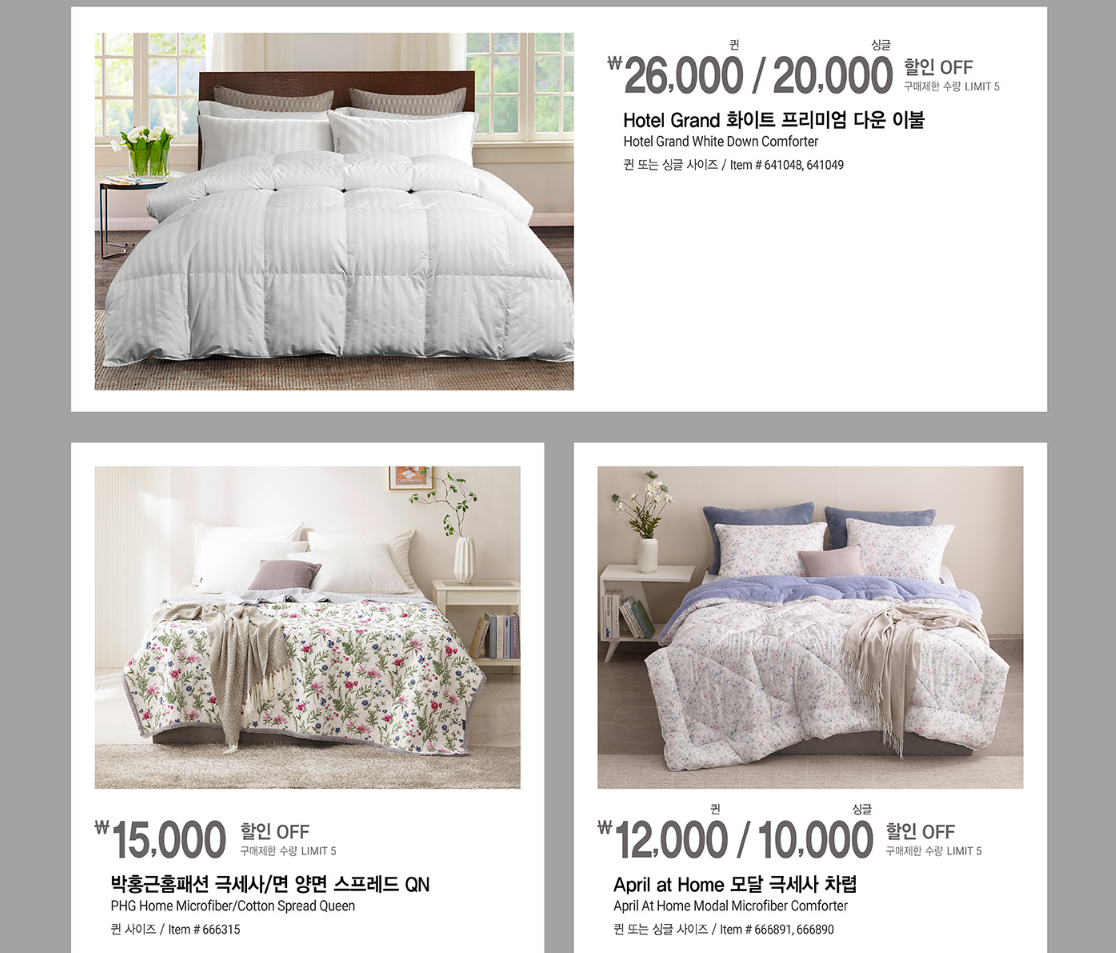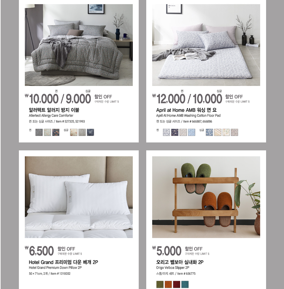 상품 내역 : 데코 상품이지만 그냥 이불상품이 주를 이루고있다. 어르신들 말로는 일부자리 할인행사다.