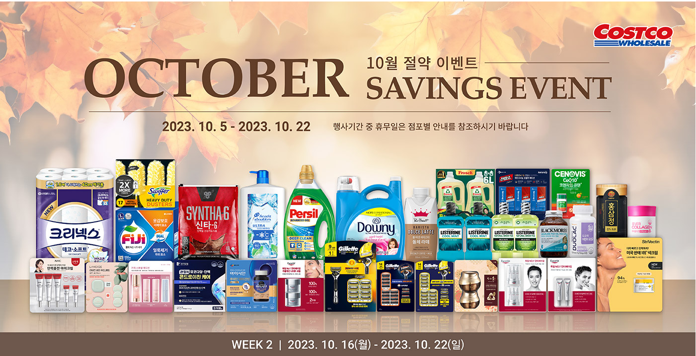 10월에는 가을이라 캠핑가기 굉장히 좋다. 10월에 신선제품을 구매를 해서 사랑하는 사람과 캠핑을 가든, 펜션에 놀러가든 좋은 추억을 쌓는데 코스트코의 할인행사가 도움이 될 거라고 생각한다.