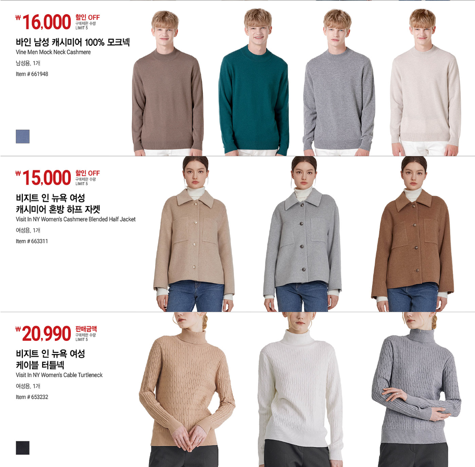 이렇게 우리가 입동준비 할 수 있게 할인하는 제품들이 많은 것을 보니 나름 기분이 좋아졌다. 이번겨울을 따듯하게 보내기위해서 필요한 것들 몇개 구매해서 몇년 동안 돌려 입자!!