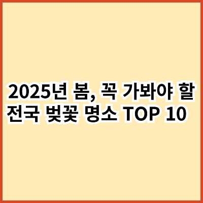 이번 포스팅에서는 2025년 봄, 꼭 가봐야 할 벚꽃 명소 10곳을 소개합니다! 🌸📷