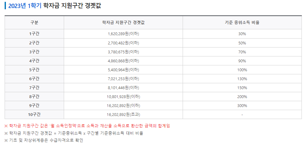 - 국내 대학에 재학 중인 학자금 지원 8구간 이하 대학생 중 성적 기준 충족자